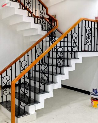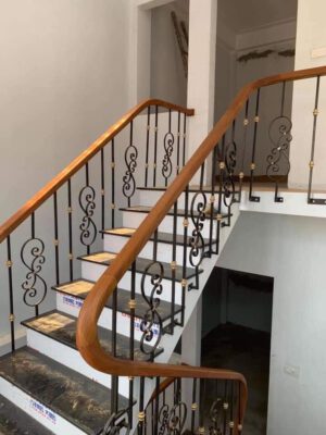 Tay vịn cầu thang: có thể làm bằng chất liệu inox hoặc chất liệu khác (thường là gỗ tạo cảm giác ấm áp và sang trọng hơn)